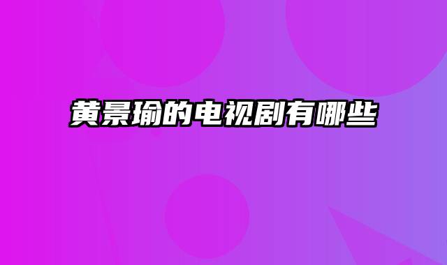 黄景瑜的电视剧有哪些