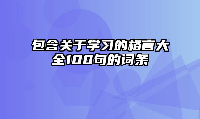 本篇文章给大家谈谈关于学习的格言大全100句,以及对应的知识点,希望对各位有所帮助,不要忘了收藏本站喔。